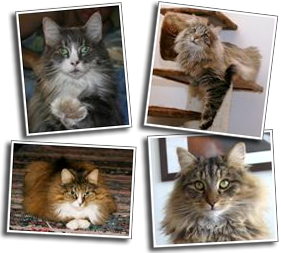 Mina katter, ...Jag fick min första katt, Mishca, år 1987. År 1993 föddes min första Norska skogskatt, Mingo. Mingo är stammoder i Bifrost's katteri.